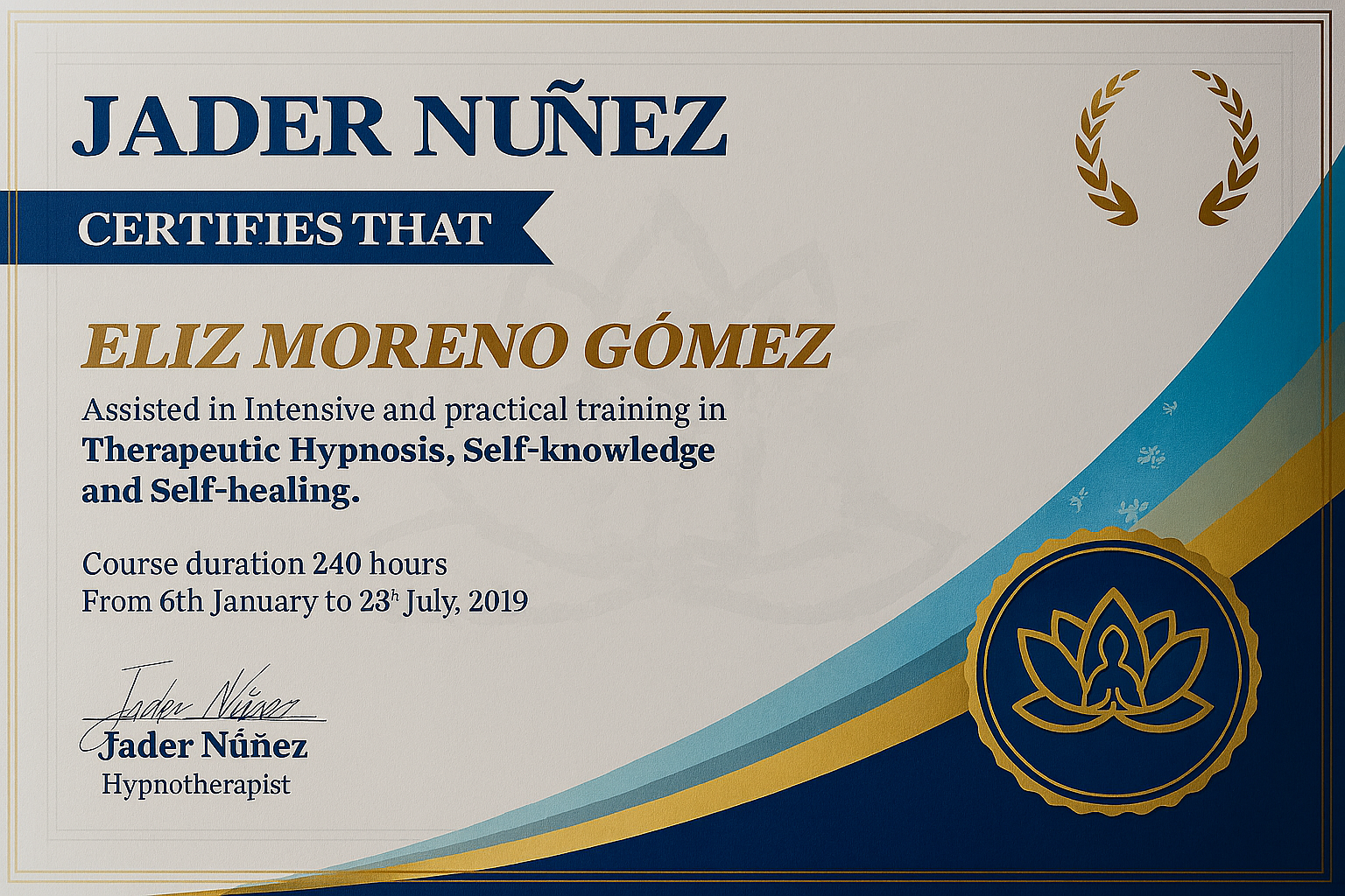 In order to complement my career, and keep up to date with the techniques I apply, I joined the Professional Hypnosis Academy (LAHP, based in Austria), where I have undertaken additional training and obtained other degrees.